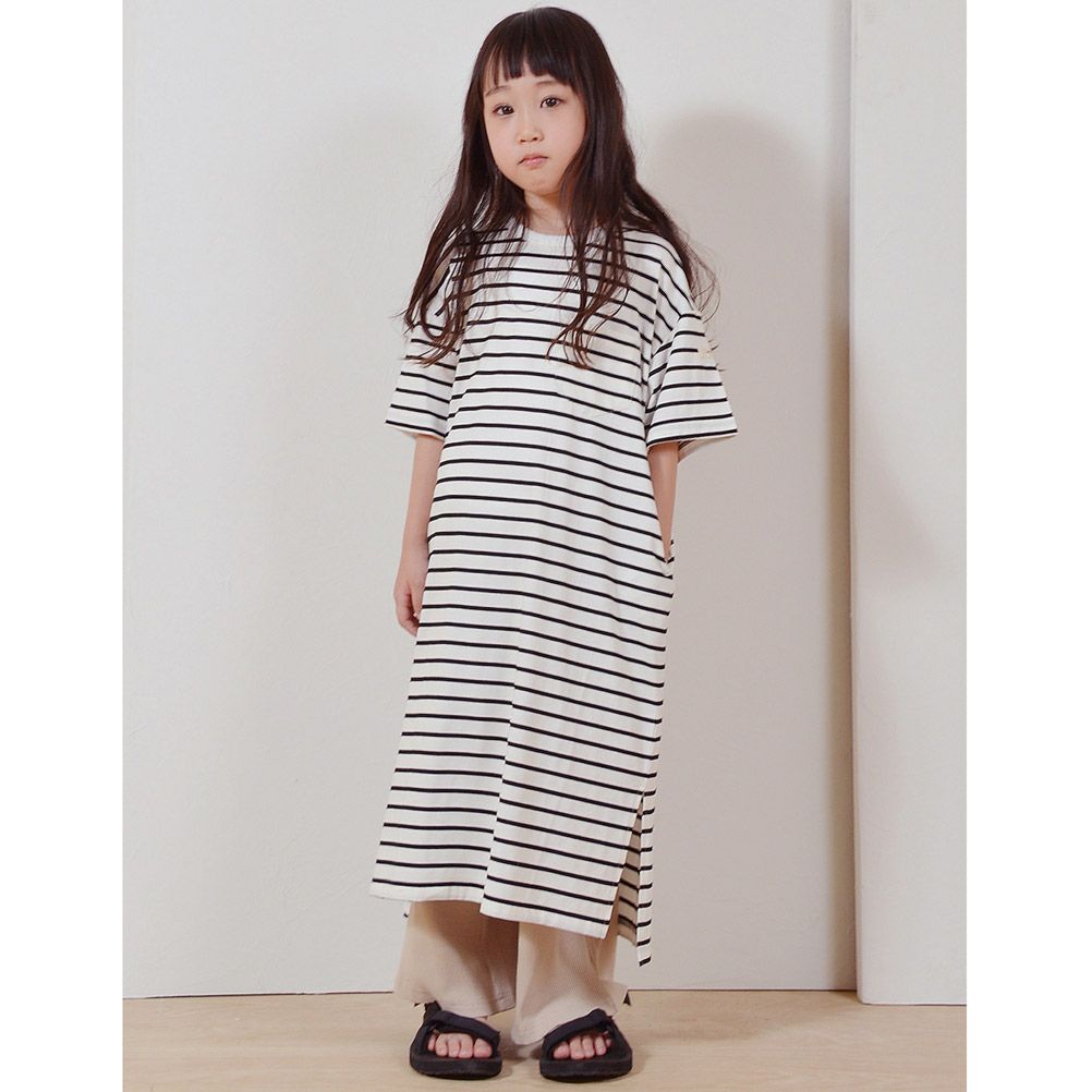 [アンディニー] ボーダースリットワンピース ブラック(BK)