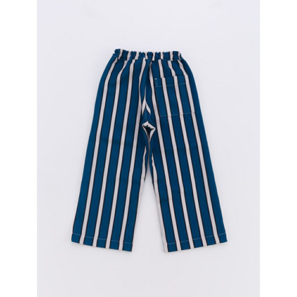 [オーシャン&グラウンド] ドット&ストライプワイドパンツ ターコイズブルー(TB)