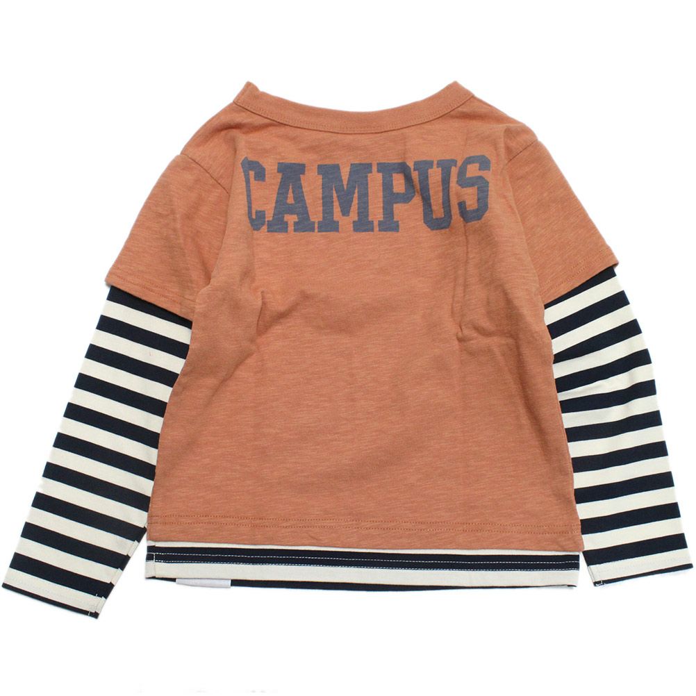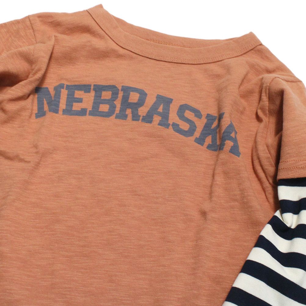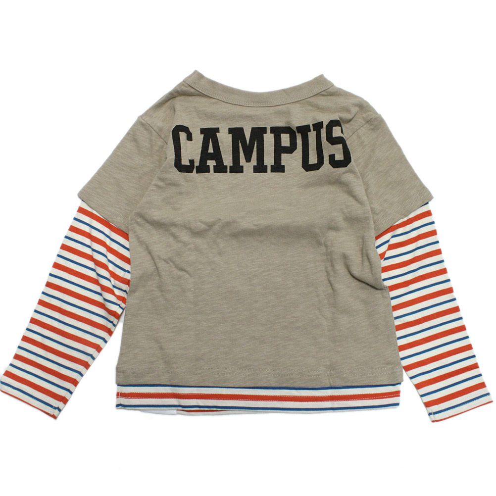 [オフィシャルチーム] ボーダー×スラブ天竺レイヤードTシャツ ベージュ