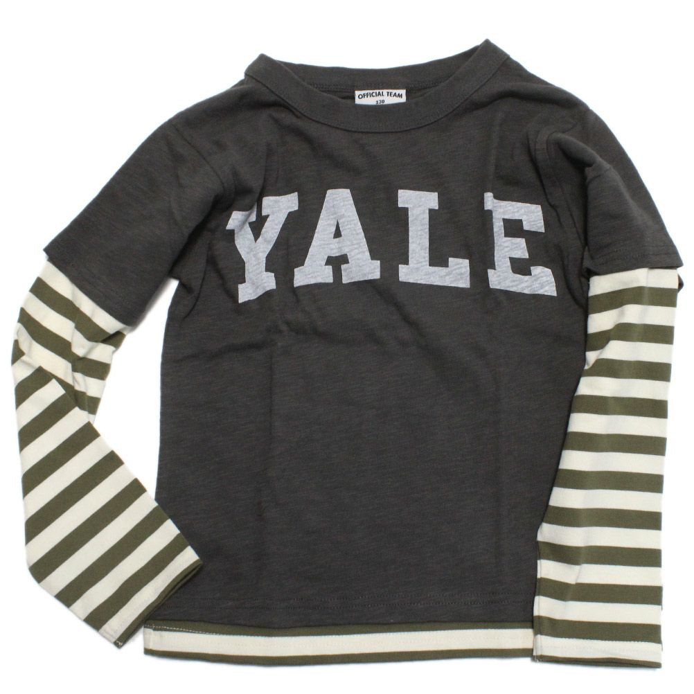 [オフィシャルチーム] ボーダー×スラブ天竺レイヤードTシャツ チャコールグレー