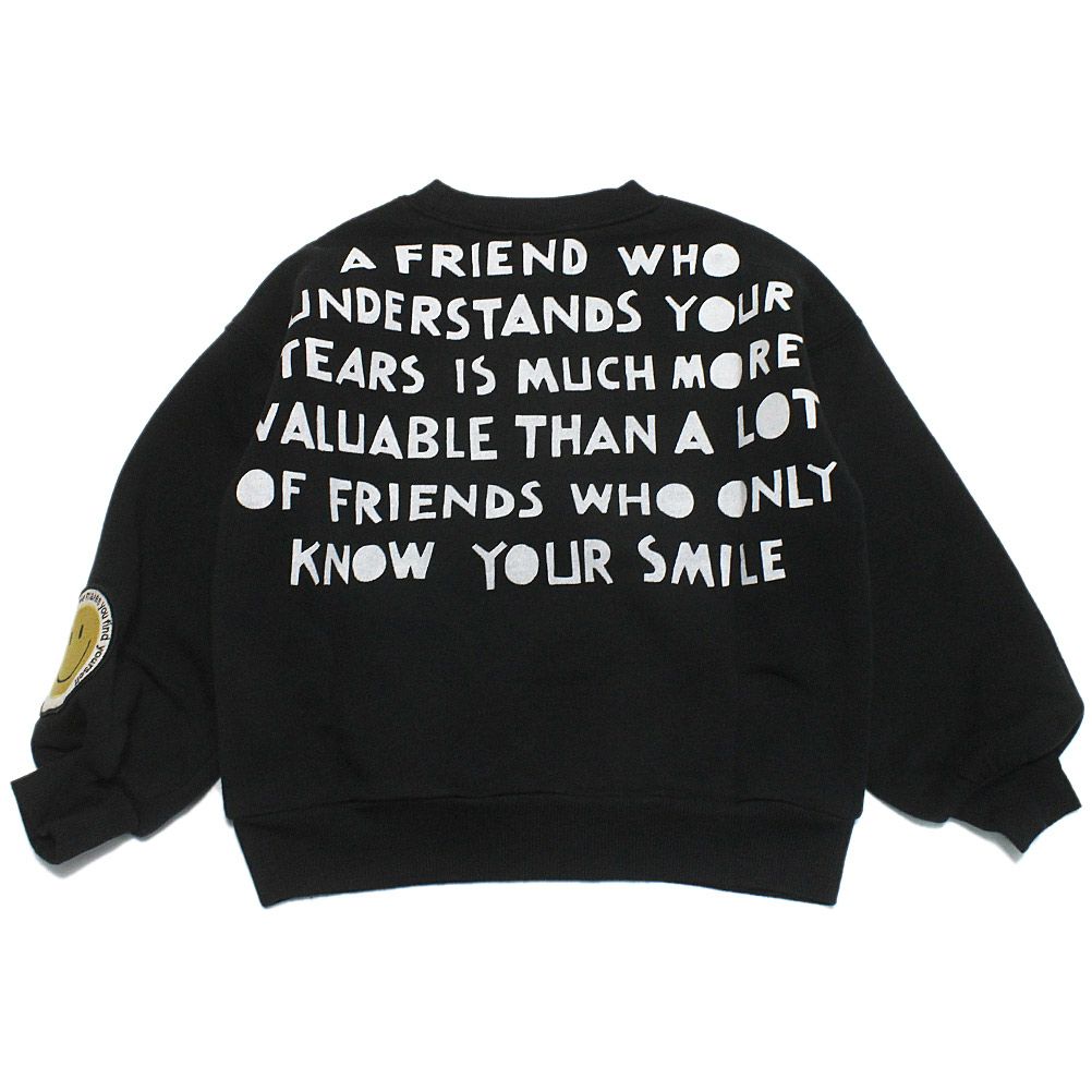 [ニードルワークス] T/C裏起毛プリントトレーナー ブラック