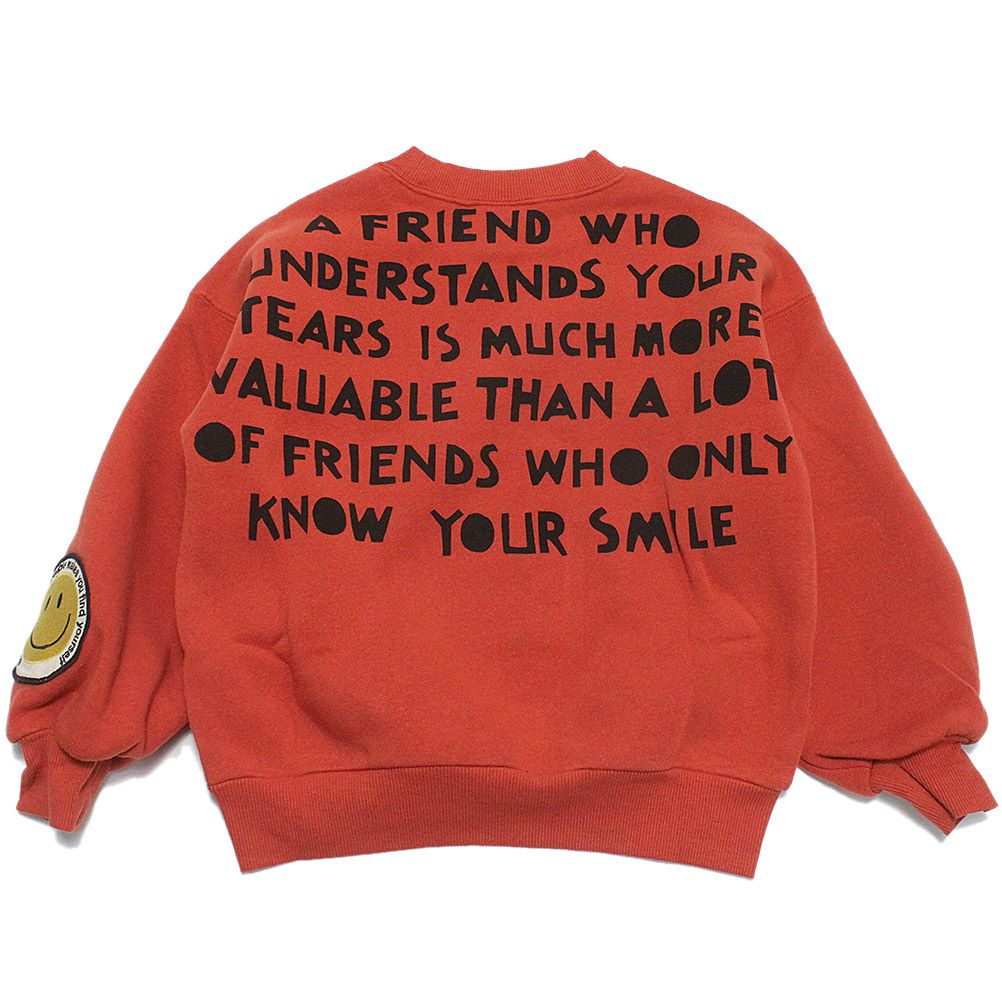 [ニードルワークス] T/C裏起毛プリントトレーナー スカーレット