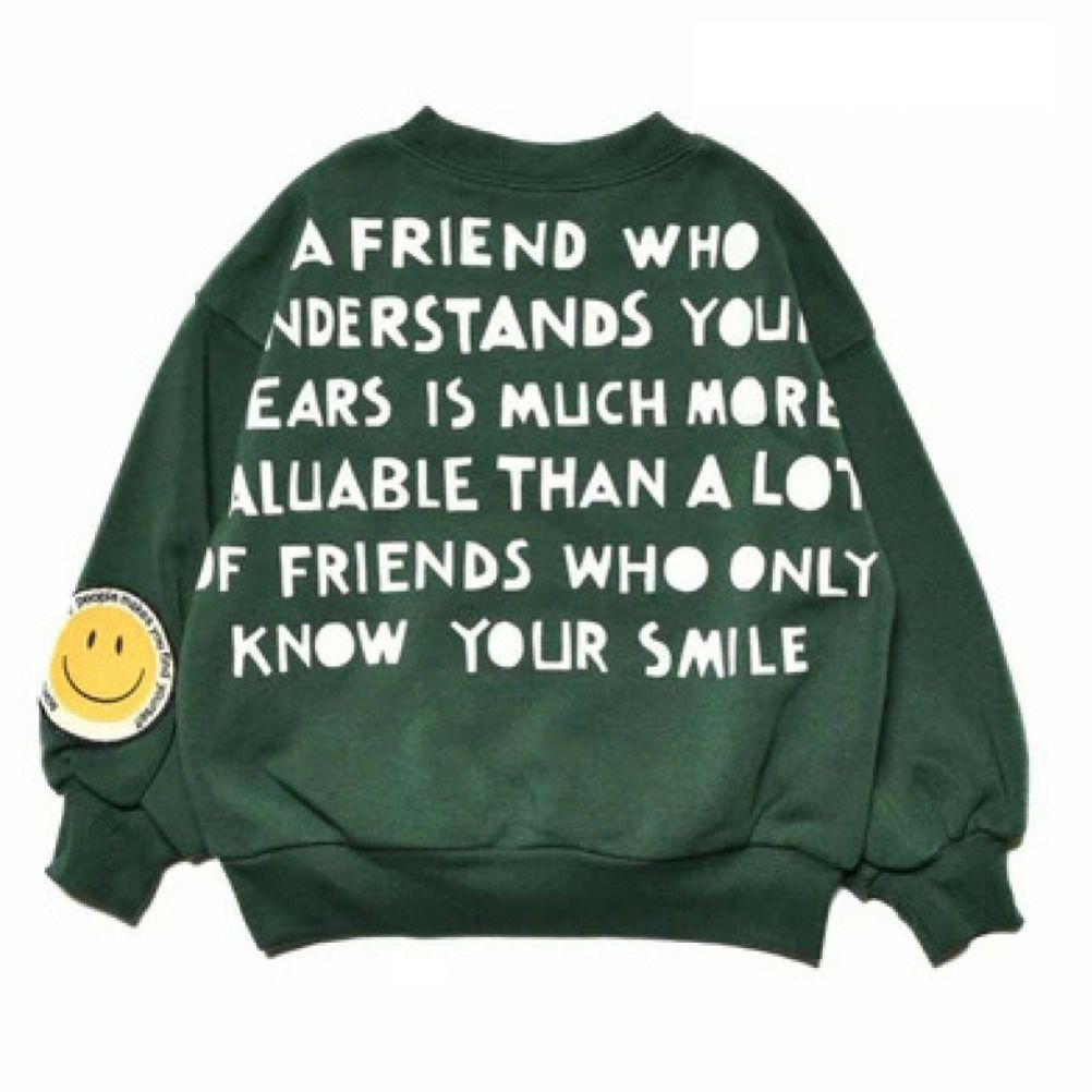 [ニードルワークス] T/C裏起毛プリントトレーナー グリーン