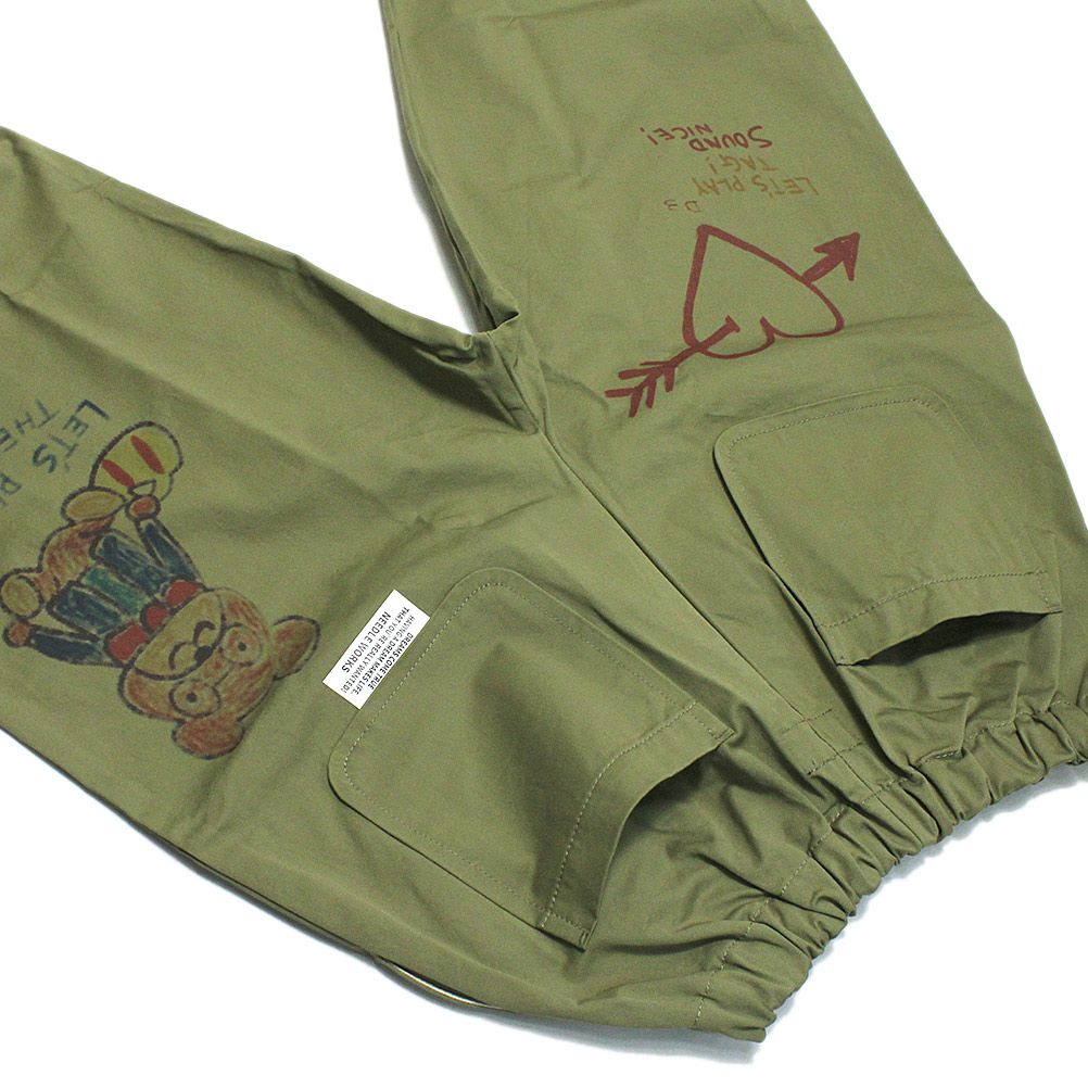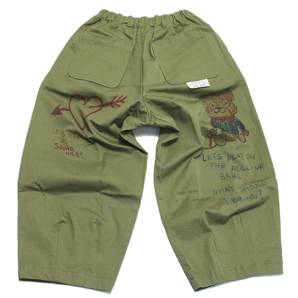 [ニードルワークス] ギャバ落書きタックワイドパンツ カーキ