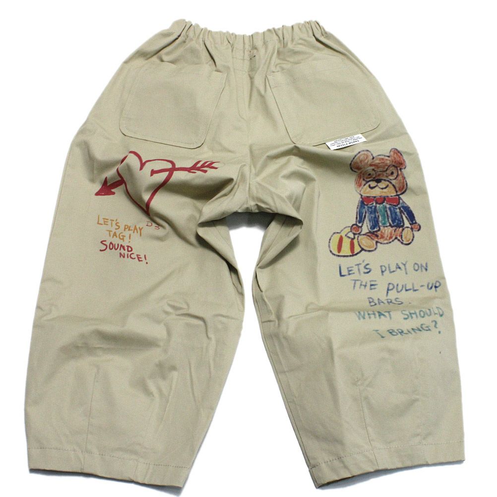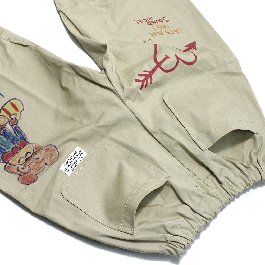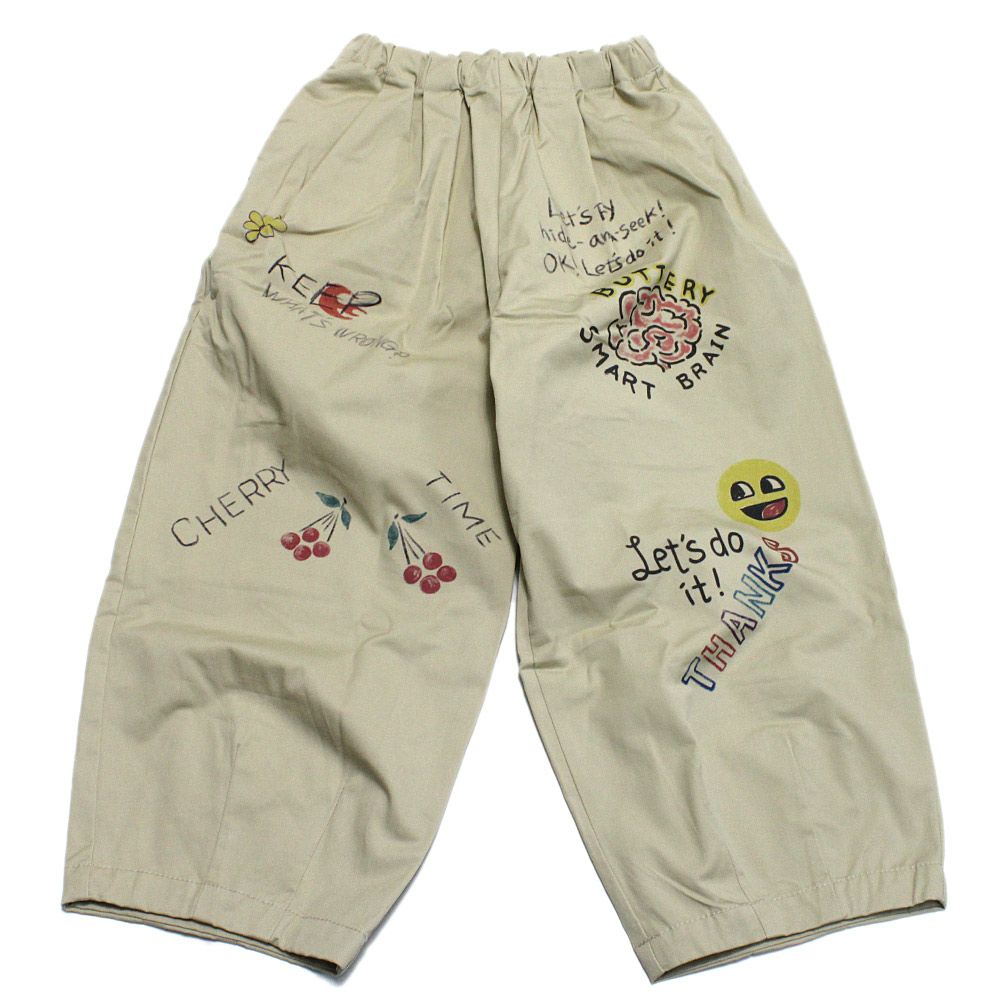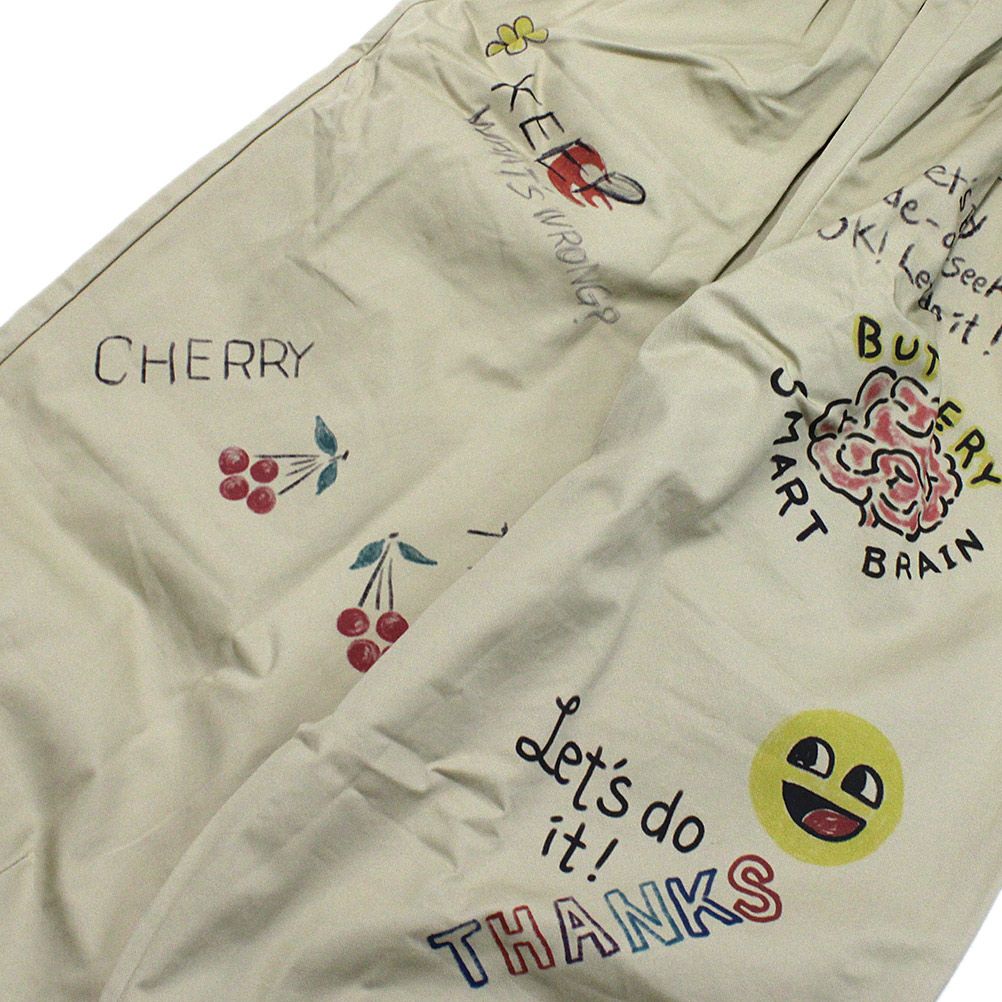 [ニードルワークス] ギャバ落書きタックワイドパンツ ベージュ