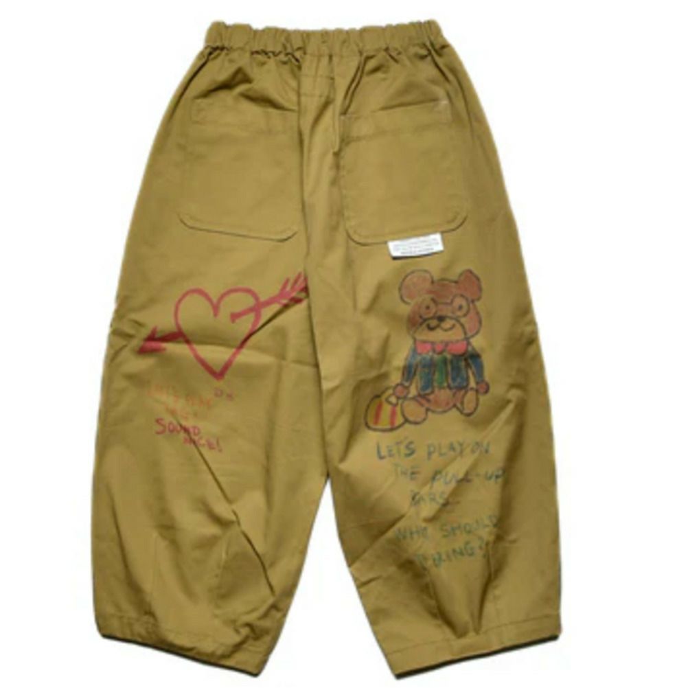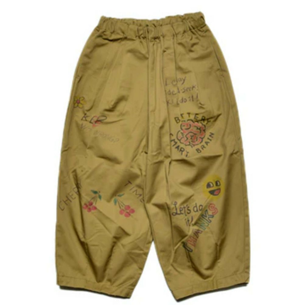 [ニードルワークス] ギャバ落書きタックワイドパンツ ブラウン