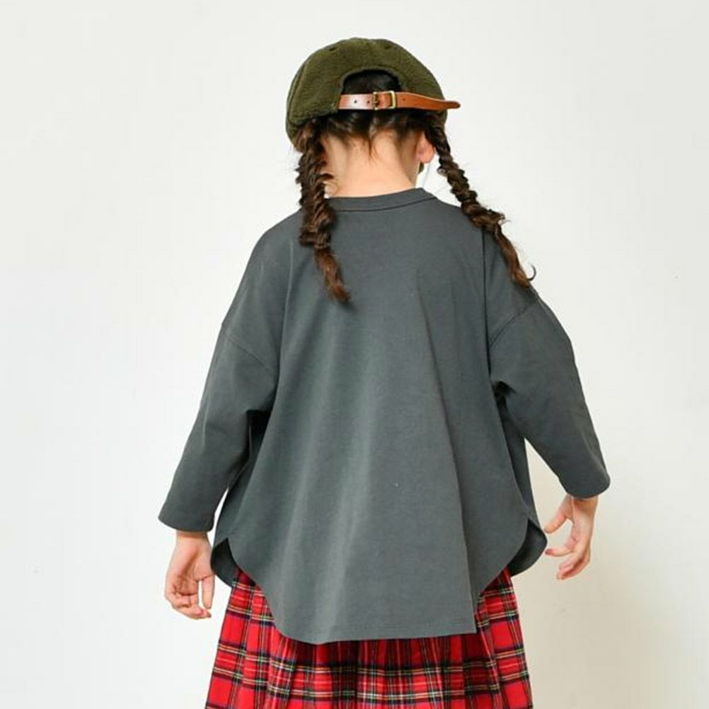 [ニードルワークス] 天竺ロング丈ロンT(8分袖) チャコール