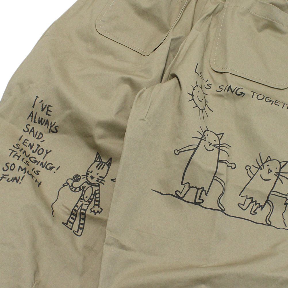 [ニードルワークス] ギャバ落書きコクーンパンツ ベージュ