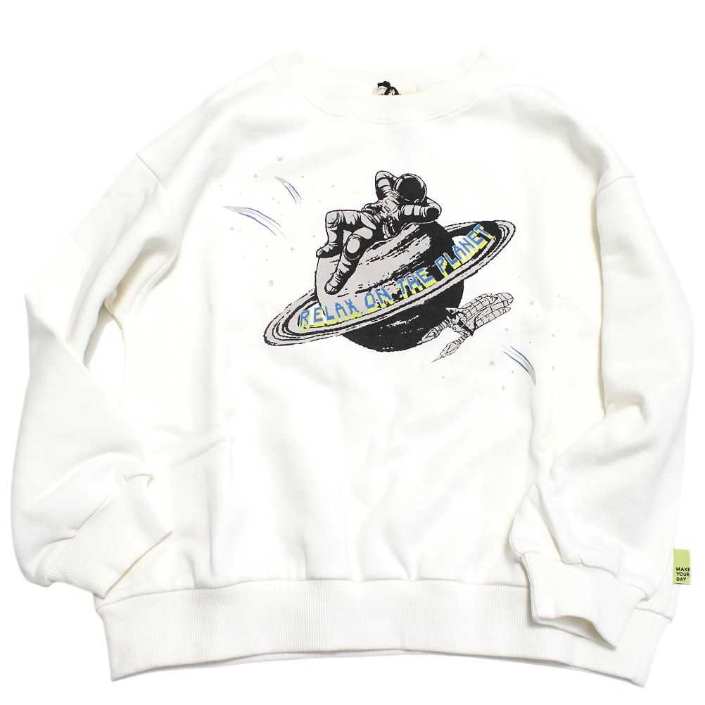 [メイクユアデイ] 宇宙プリントトレーナー オフホワイト(OW)