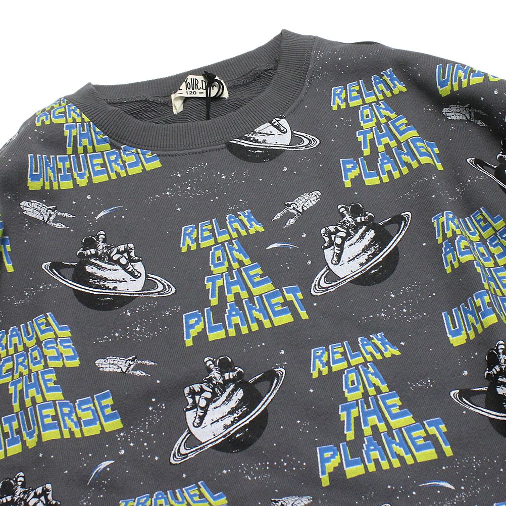[メイクユアデイ] 宇宙柄トレーナー チャコール(CH)