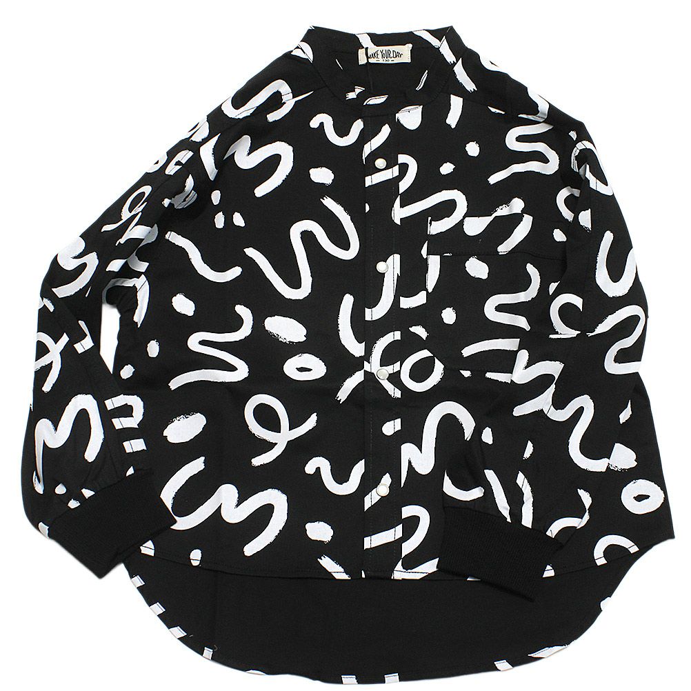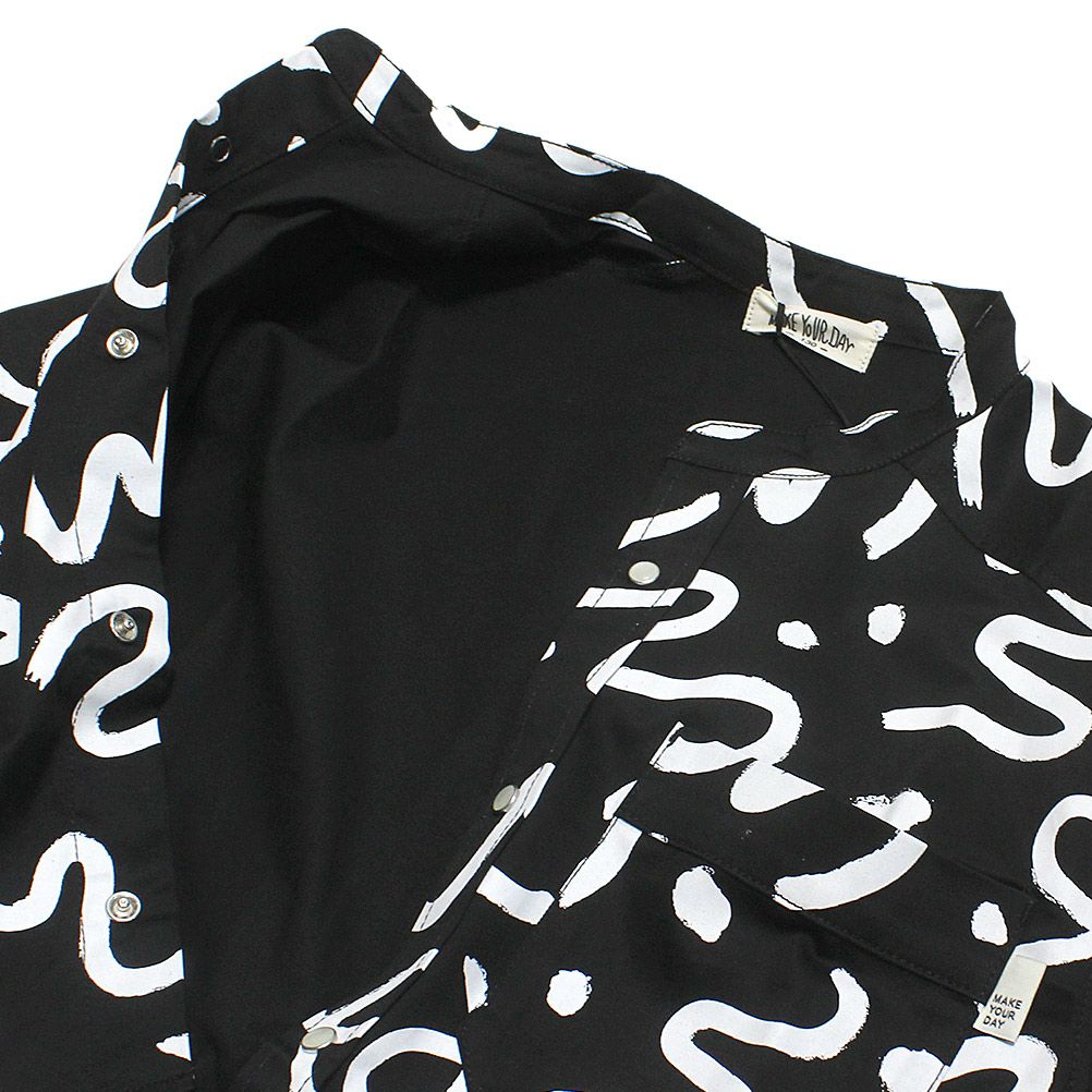 [メイクユアデイ] 総柄バンドカラーシャツ ブラック(BK)