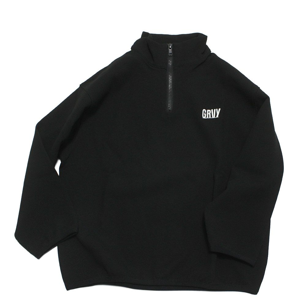 [グルーヴィーカラーズ] PTT ワッフル HALF ZIP プルオーバー 2BK黒