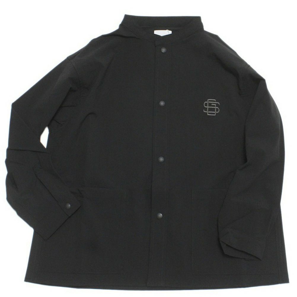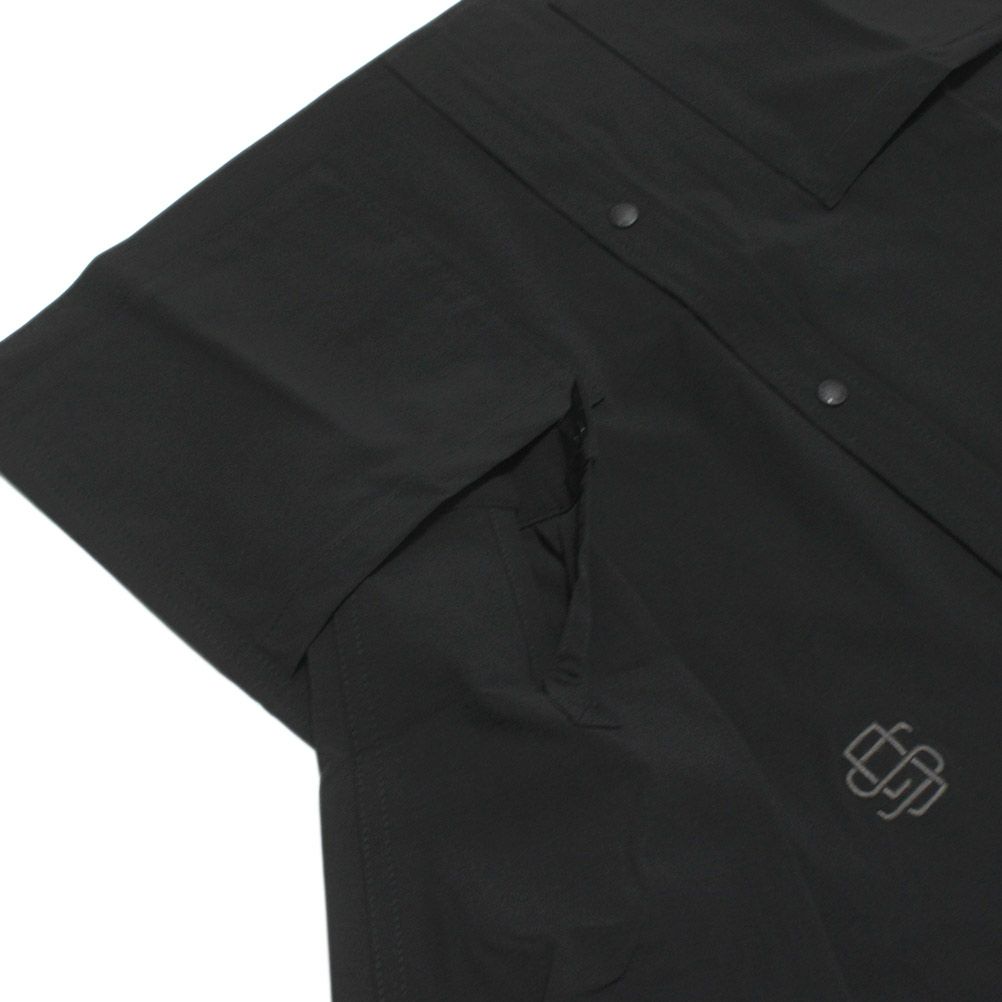 [グルーヴィーカラーズ] ナイロン 4WAY リップストップ バンドカラー シャツ 2BK黒