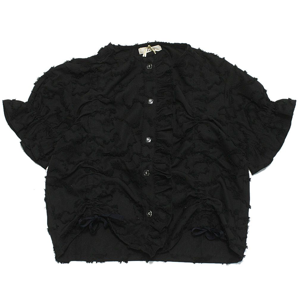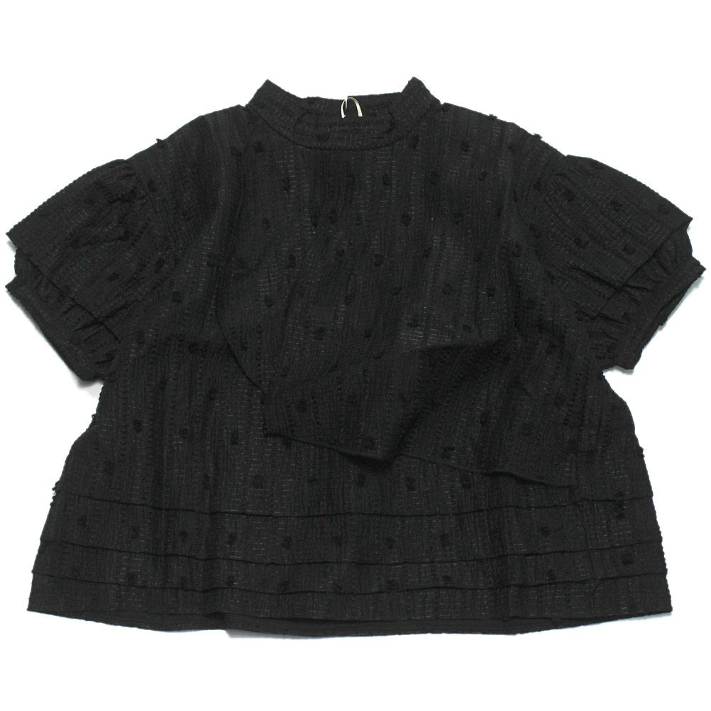 [オーシャン&グラウンド] ボリュームフリルスリーブTシャツ ブラック(BK)
