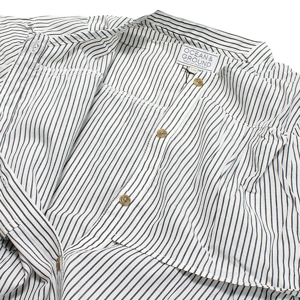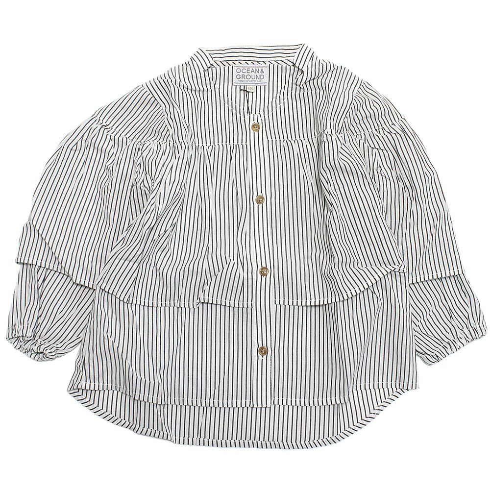 [オーシャン&グラウンド] 8分袖ラッフルシャツチュニック ホワイト(WH)