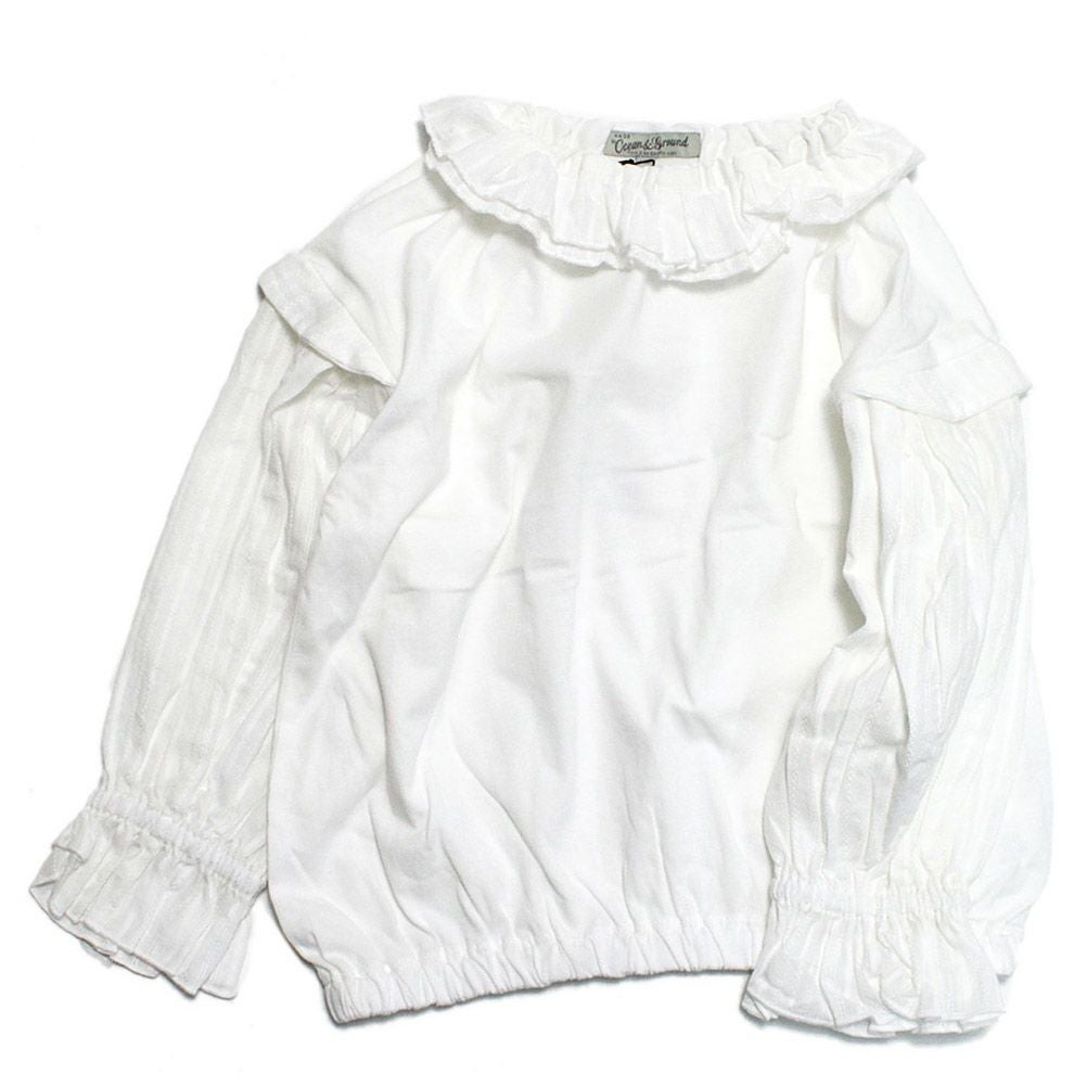 [オーシャン&グラウンド] フリルカラーバルーンTシャツ ホワイト(WH)