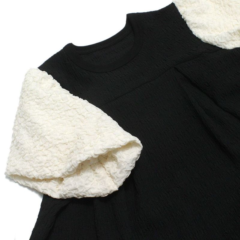 袖がシロで身頃がクロのバイカラーデザイン。