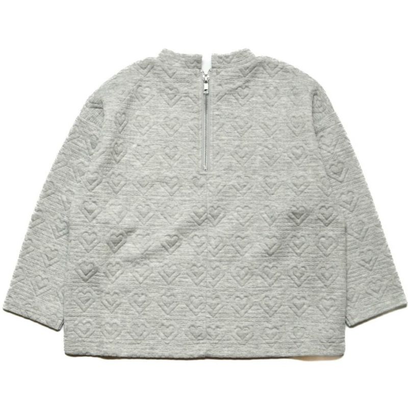 リボンとハート、2柄のニットキルトのプルオーバー。