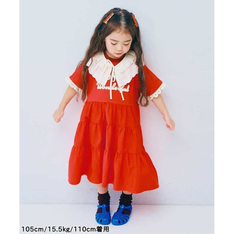 “ピードットプルミエ”のフェルトロゴリンガーTティアードワンピース
