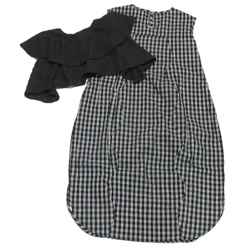 4. [ユニカ] カーデ付きチェック柄ウェーブラインワンピース ブラック(4)