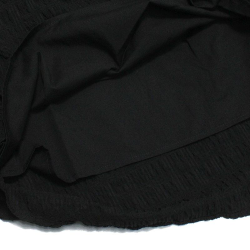 様々な生地を層のように重ねて立体感を演出したワンピースです。