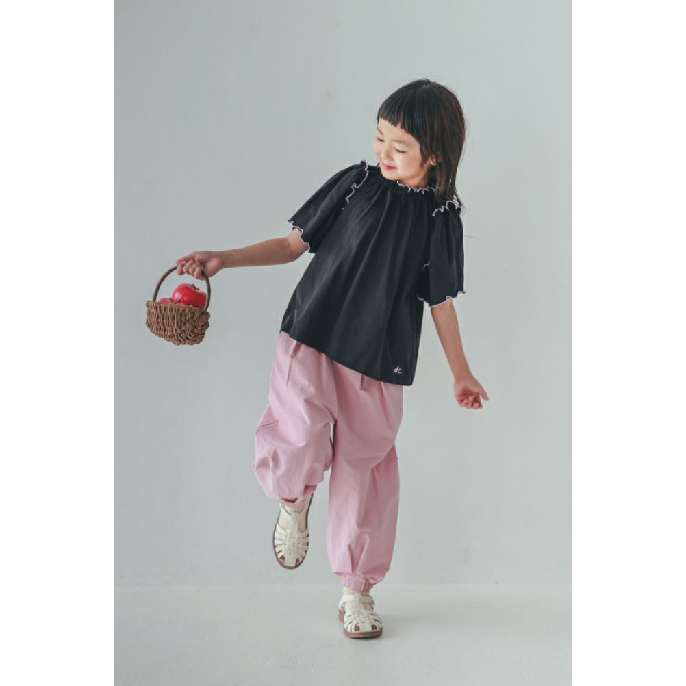 [ピードットプルミエ] ハートポケットフリルパンツ デニム(DM)