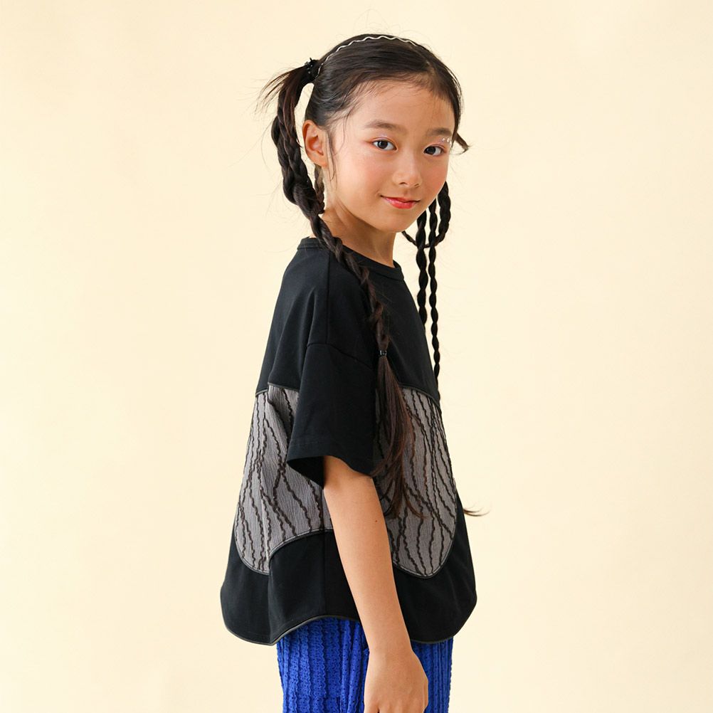 [ユニカ] サイドプリーツチェックTシャツ ブラック(4)