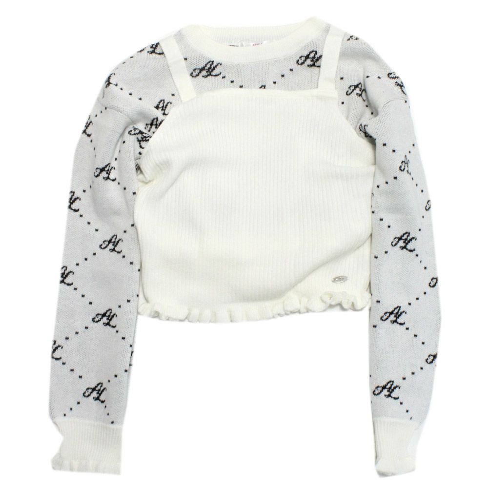 [アルジー] 総柄短丈ニット×キャミセット オフホワイト(OW)
