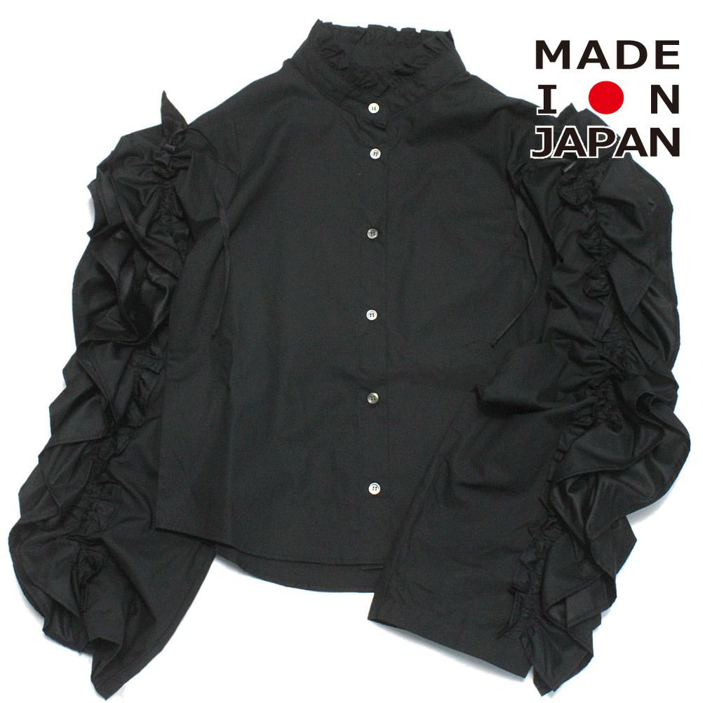 [アンディニー] 袖フリルブラウス ブラック(BK)