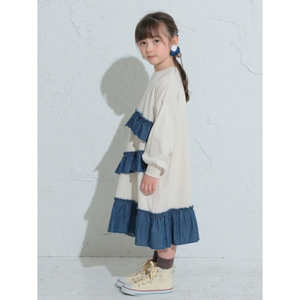 [オーシャン&グラウンド] デニムフリルドッキングカットソーワンピース キナリ(KN)