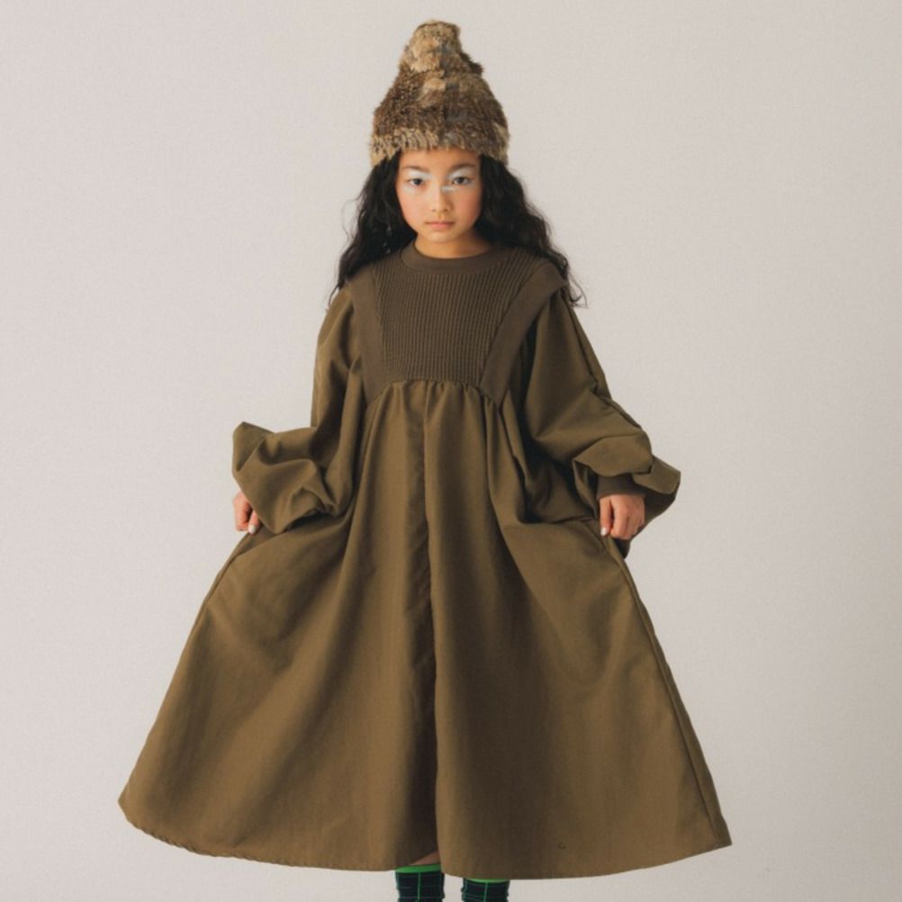 [ヌヌフォルム] ワッフルギャザーワンピース ブラウン