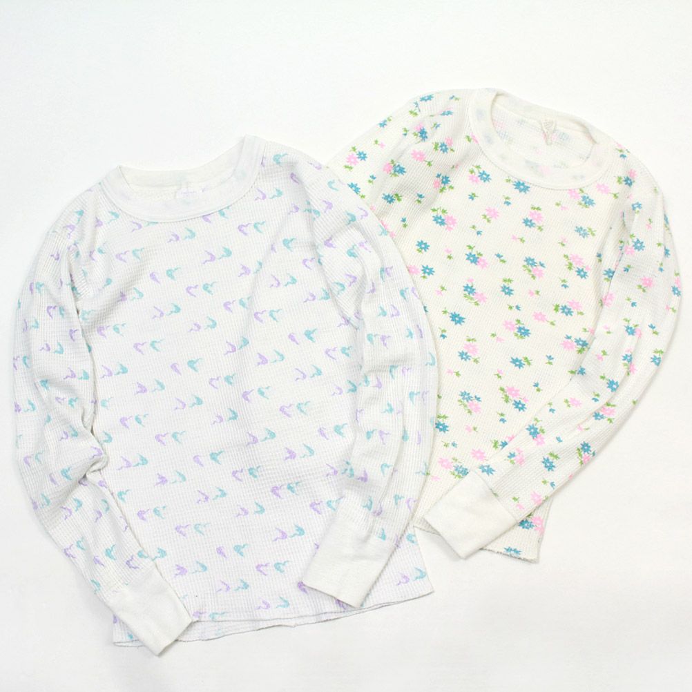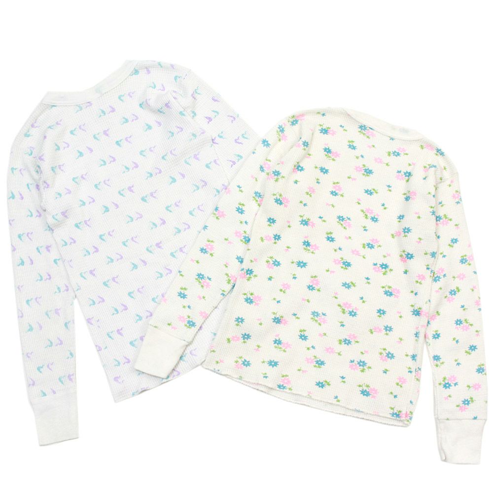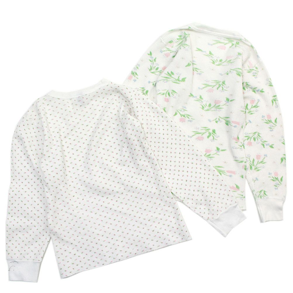 [ユーエスユーズド] 花柄ワッフル2PロングTシャツ ホワイト