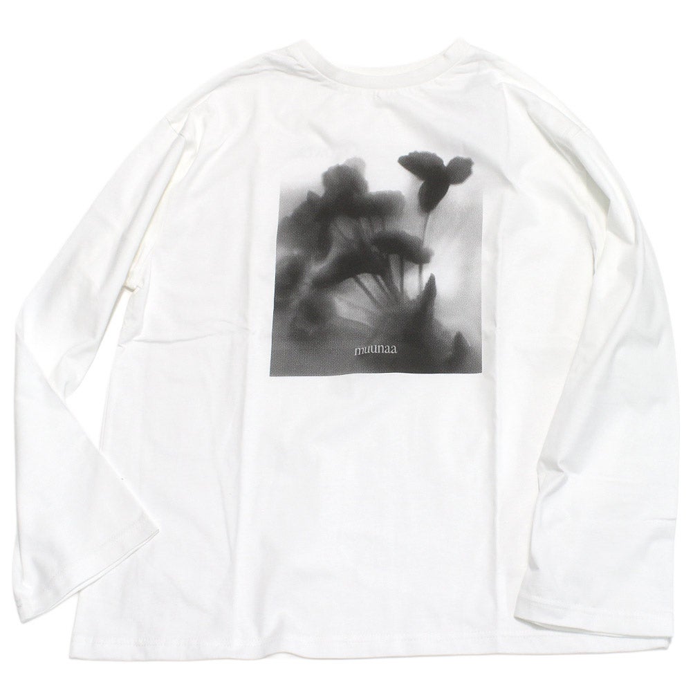 [ムウナ] フォトフラワーPT長袖Tシャツ シロ(1)