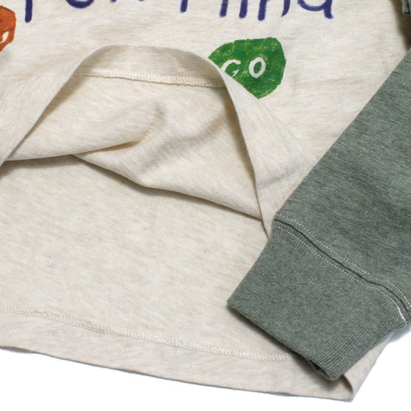 ゆったり着られるラグランスリーブは袖のカラー切り替えが特徴です。