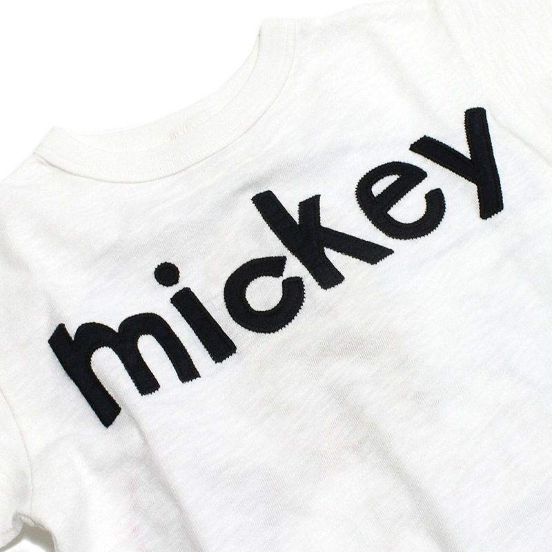 フロントは、手でつけたようなmickeyのサテンの文字が魅力的。