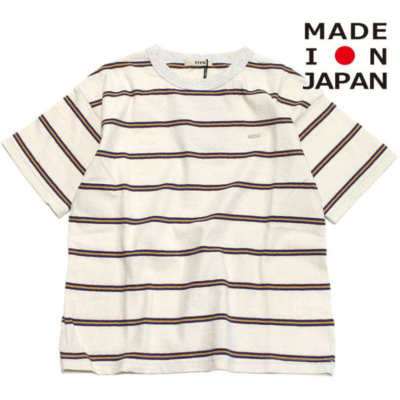 生地は19/スーピマの落ち綿20%を使用したリサイクル糸ボーダー。