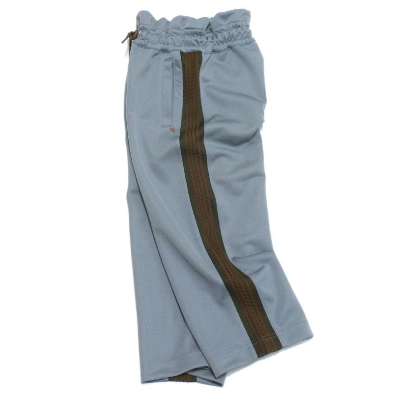 腰で履くとシルエットに丸みが生まれる変形トラックパンツ。