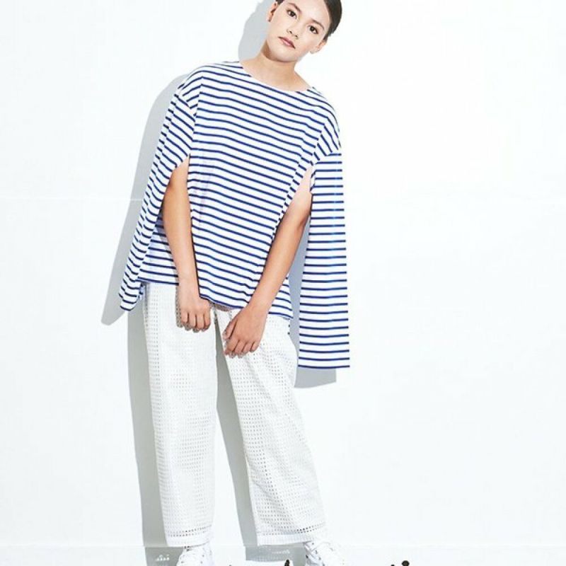 着心地のいいカットソー地にメッシュ素材を張り合わせた抜け感のあるパンツ。