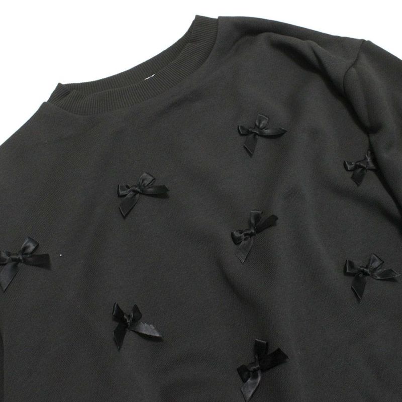 小さめのリボンが散りばめられたクルーネックトレーナー。