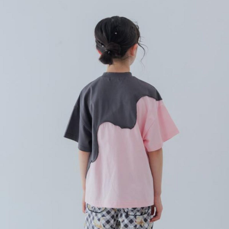 4. [ユニカ] twoピースバイカラーTシャツ チャコール×ピンク(61)