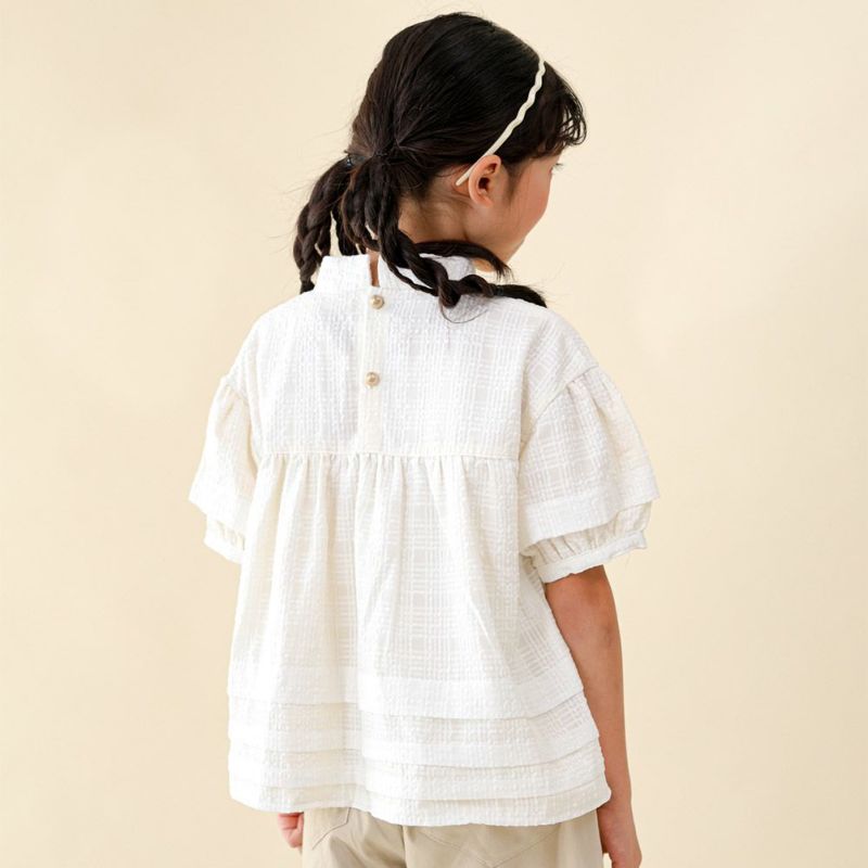 スッキリとした首回りがスマートな、スタンドカラーのブラウスです。