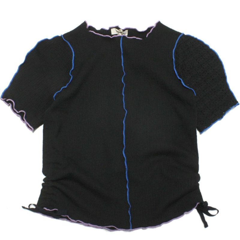軽やかで立体感のあるシャーリング素材のカットソーは、左右異なる生地を使用した袖がポイント。