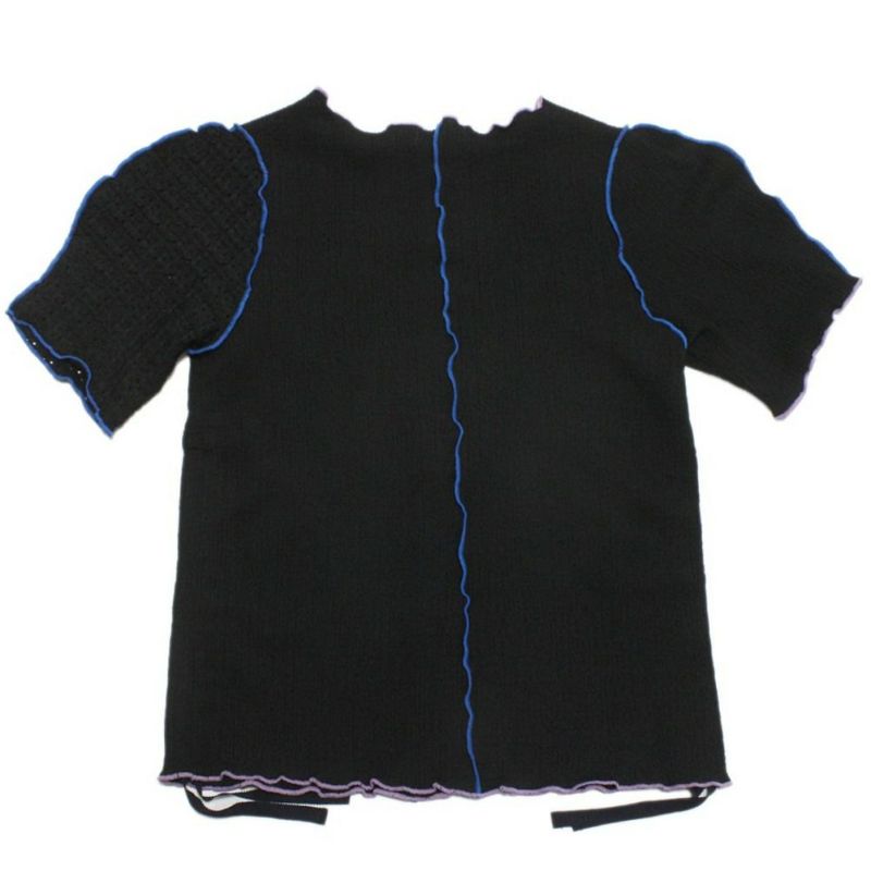 軽やかで立体感のあるシャーリング素材のカットソーは、左右異なる生地を使用した袖がポイント。