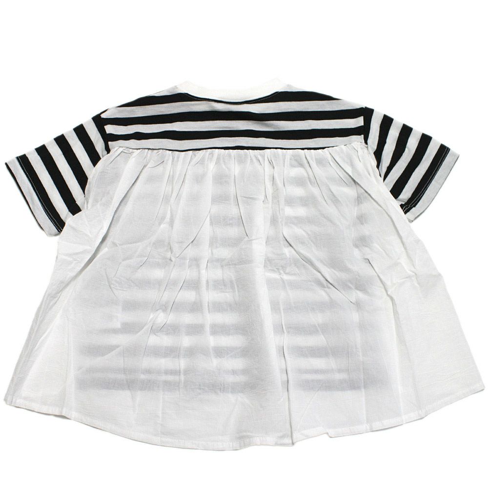 [ニードルワークス] ローンストライプギャザーブラウス ネイビー