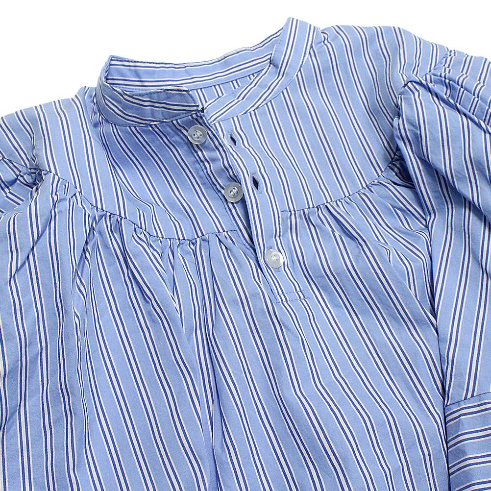 [ニードルワークス] ローンストライプギャザーブラウス ブルー