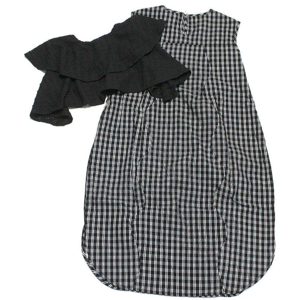 [ユニカ] カーデ付きチェック柄ウェーブラインワンピース ブラック(4)