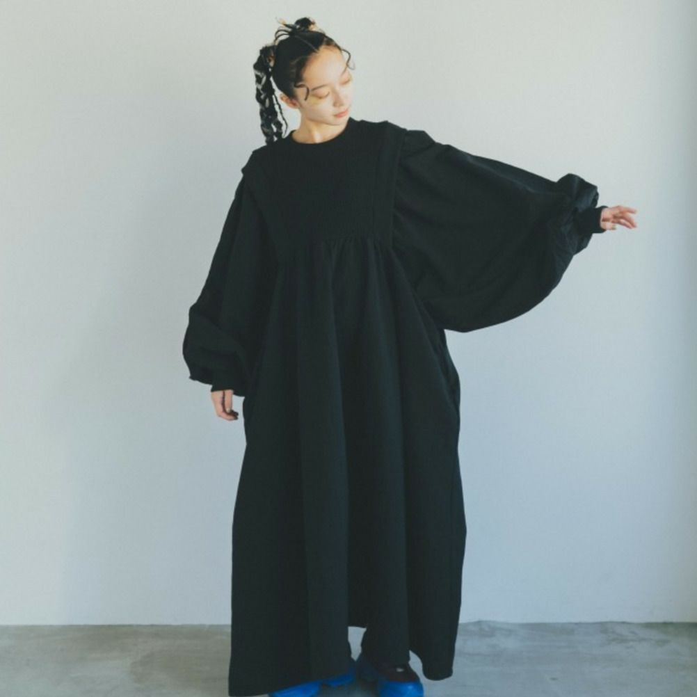 [ヌヌフォルム] ワッフルギャザーワンピース ブラック