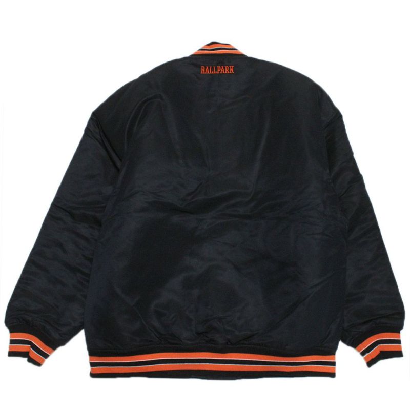 表面の光沢感が特徴のナイロンサテンを使用したベースボールジャケット。