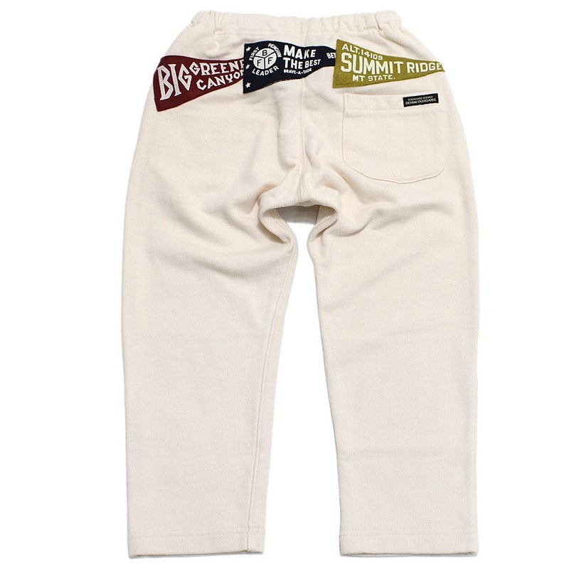 ヒップに取り付けたペナントが目を惹くスウェットパンツ。