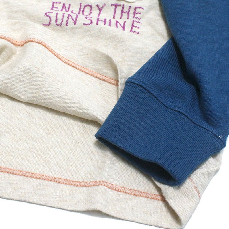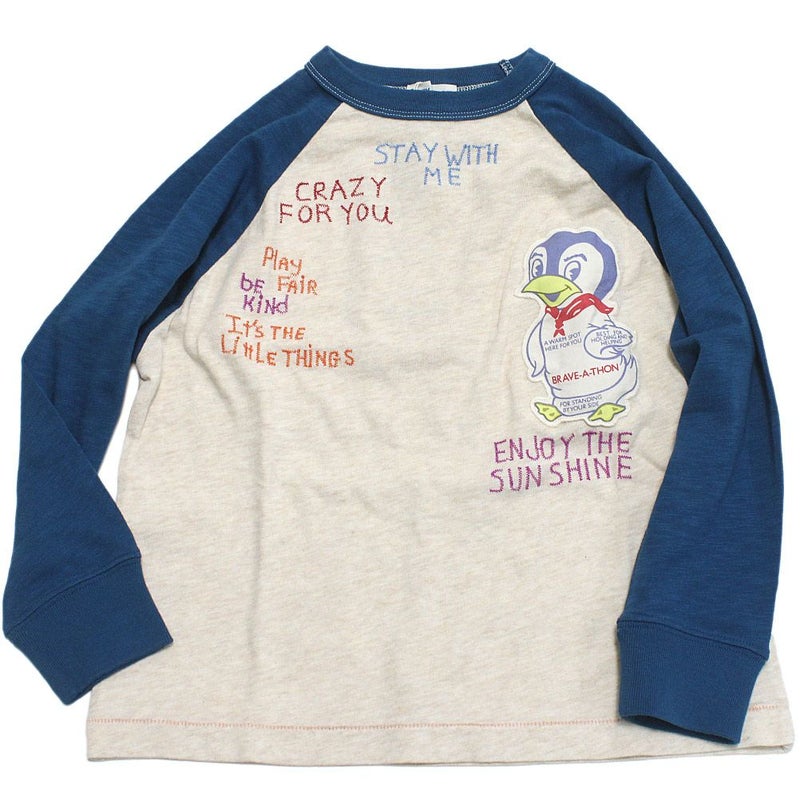 袖のカラーを切り替えたラグランスリーブのロンT。